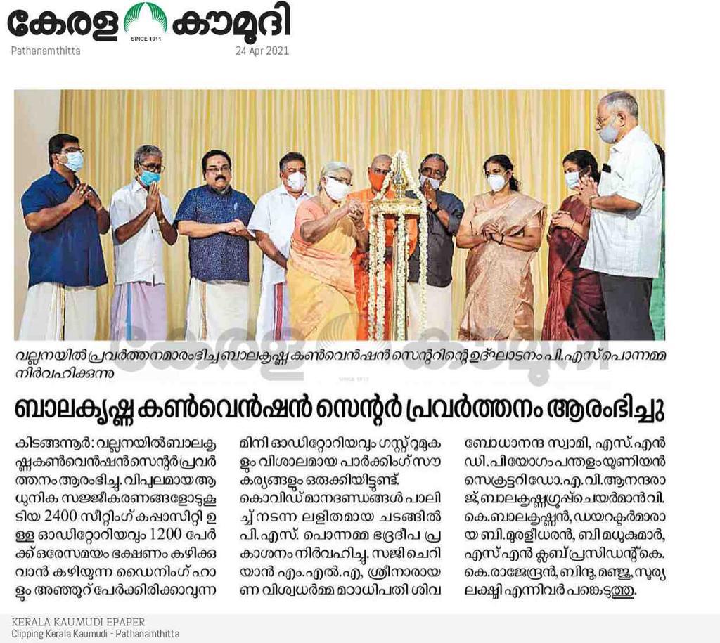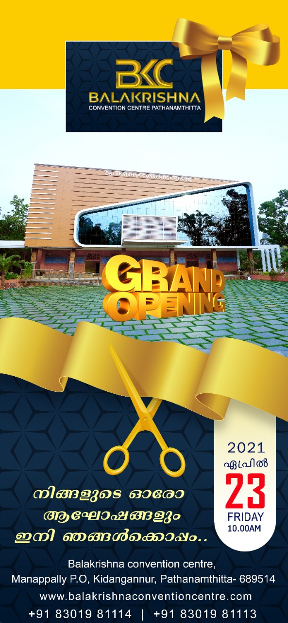 Presently, we are expanding our horizons to include the newly started Balakrishna Convention centre with the best available infrastructure. Mr. Balakrishnan has always dreamed about serving the society in whichever manner possible and this convention centre is a testament to his conviction, vision and strength, in realising that dream. The centre is a unique and state of the art establishment located at Manappally, with the primary goal of conducting wedding, receptions, and conventions in addition to other social gatherings. It boasts of more than 80,000 sq ft built up area with one main hall with a seating capacity of 2400, a mini hall with the capacity of 500 and a dining hall which can accommodate 1200 people in addition to the added attraction of 3 suites.